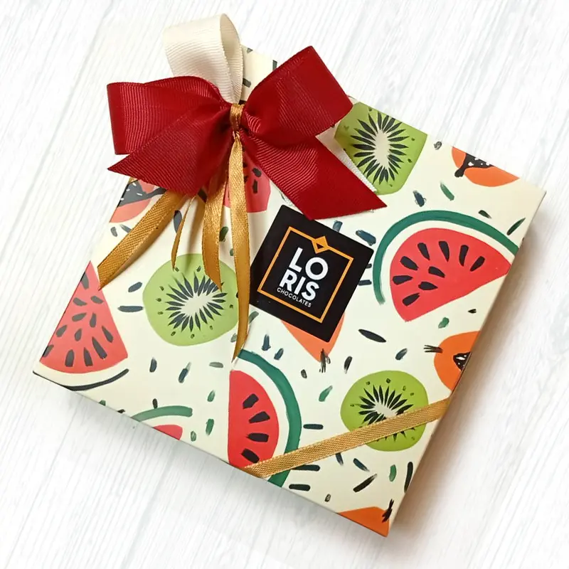 Caja edición limitada de 9 bombones artesanos con mazapán y fruta natural, envueltos en chocolate negro, que combinan la tradición con la frescura de la fruta: cereza, cassis, albaricoque y fruta de la pasión. Sin lactosa, sin gluten.