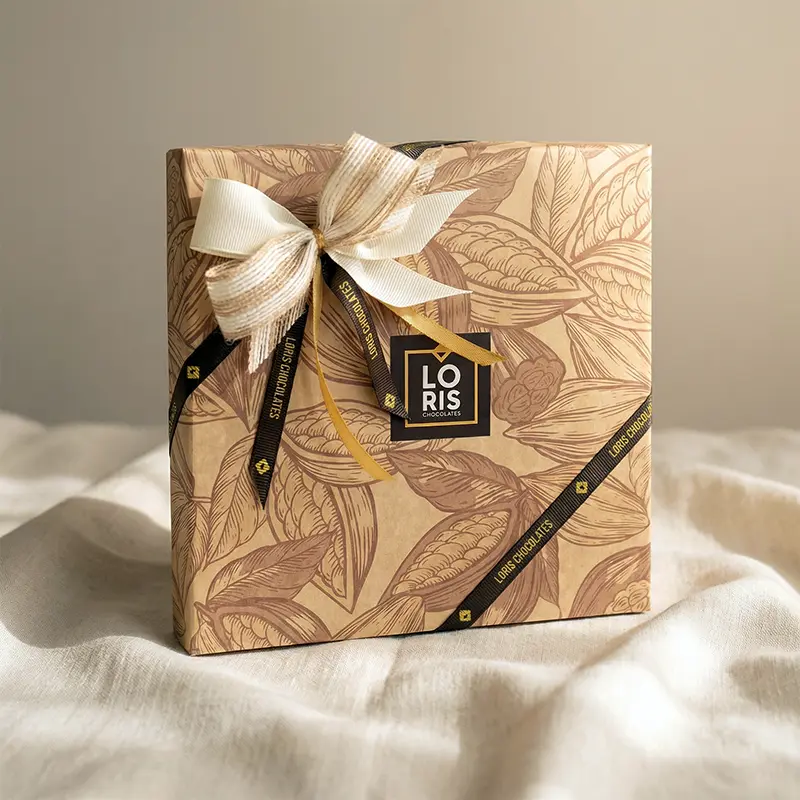 Caja 16 bombones artesanos creados en pequeñas tandas con los mejores ingredientes naturales, orgánicos y de comercio justo, sin lactosa, sin gluten. Cada bombón, pintado a mano uno a uno con colorantes naturales a base de plantas, es una delicia única y exquisita.