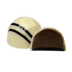 Bombón de praliné de almendra y coco, una experiencia tropical e indulgente con la combinación perfecta de la dulzura de la almendra y el exótico sabor del coco.