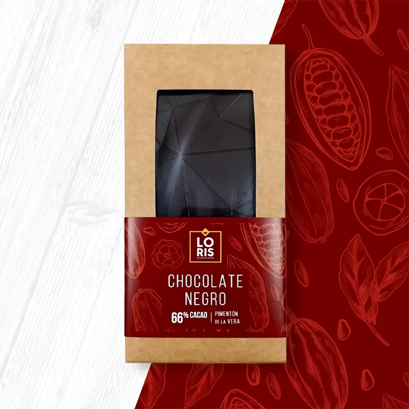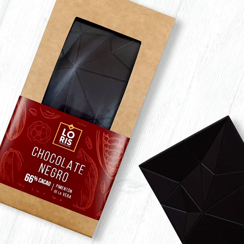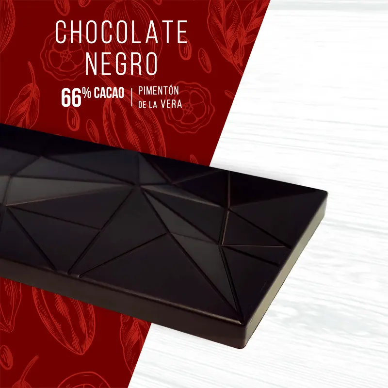 Tableta de chocolate negro 66% con un toque dulce y ahumado de pimentón de La Vera.